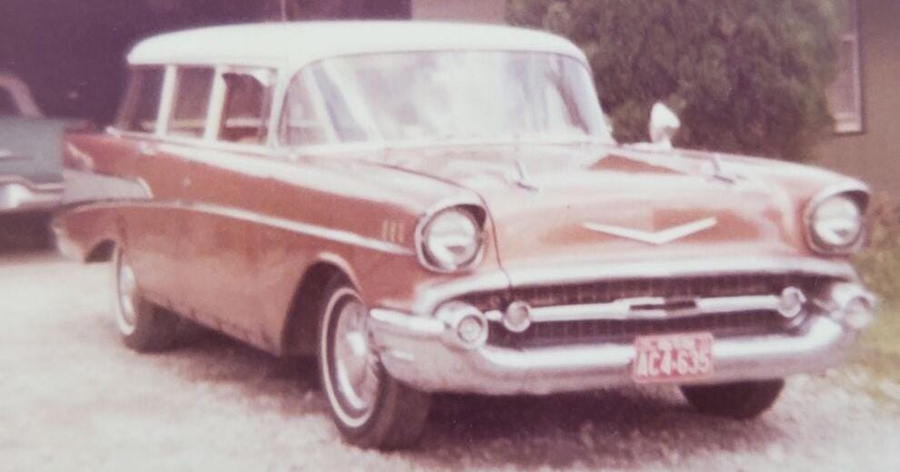 I’m in my own world looking at the back of daddy’s head, his black hair slicked back neatly and Mama’s short tightly curled brunette bob showing above the high front seat. All is well in my five year old world. I can’t see the road over the seat, but I sit contentedly looking at mama and daddy, and out the side window. Hay fields and cows, familiar ranches of neighbors pass by which I feel assured I will see again on the ride back. I always do. I don’t know where daddy is taking us, but he knows where we are going and that is all that matters. Wherever we end up, we will be safe and he will get us back home. He knows the road and he knows the car and how to fix it if it breaks down.